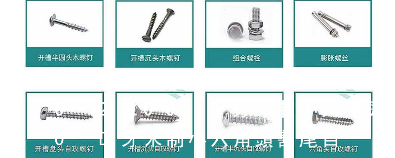B-1: Sheet Metal Tapping Screw. (鐵板牙自攻螺絲)B-2: Plastic Tapping Screw. ( 塑料用, 自攻螺絲)C: Wooden Screw : 木工螺絲 D: Drywall Screw : 水泥墻螺絲 三. 常見螺絲材質(zhì):a.Low Carbon Steel :低碳鋼